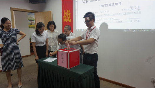 本次活动是贯彻落实广东省委、省政府关于新时代精准扶贫精准脱贫工作部署精神的重要举措。同时也是让我们深刻认识“6.30”广东扶贫济困日活动的重要意义,强化思想认识,倡导“一份捐赠一份爱心”理念。募捐中由总经理开始,随后各部门内勤人员及外勤排队进行捐款,只要人人都献出一份爱,世界会变得更美好,本次清远中支共筹集到¥2652.00元善款。