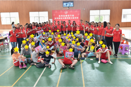 6月22日,友邦保险清远中心支公司总经理白铨桥先生带领31位内外勤伙伴,冒着风雨来到清远市清新区清四公路旁的清远市特殊教育学校,开展“友邦关爱在行动——友邦清远为爱奔跑公益活动”。这是友邦清远中心支公司继2017年清远浸潭关爱留守儿童后的的第2次公益活动。