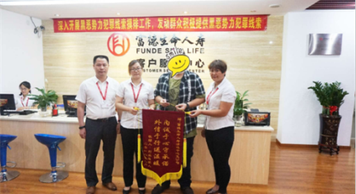 8月27日,客户刘女士儿子虞先生携锦旗“内诚于心守承诺,外信于行送温暖”前往富德生命人寿清远中心支公司柜面,对我司的理赔服务表示感谢。