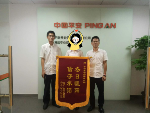 案件处理完成后,客服人员及时将理赔结果告知李先生的家属,其家属非常感动。9月5日下午,李小姐特地从英德过来为平安养老险清远中支送上“冬日暖阳 信守承诺”的锦旗,对我公司专业、快速的理赔服务表示感谢和肯定。(平安养老 钟文浩)