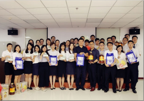 在慰问环节,清远中支负责人徐申为每一位员工发放工会精心挑选的节日慰问品,有大米、花生油和美味香甜的柚子。徐申表示,感谢员工的辛勤付出,感谢工会对员工的体贴慰问,并提前祝福全体员工中秋节快乐,家庭幸福。员工领到慰问品都十分开心,均表示工会的福利越来越好,每到节日收到工会的慰问品总会满带自豪感,因为我们有一个体贴关心员工的工会。