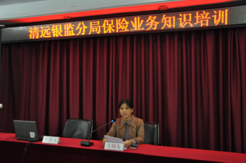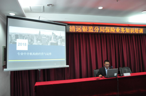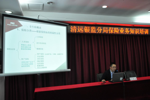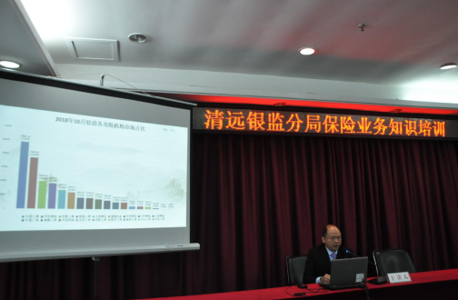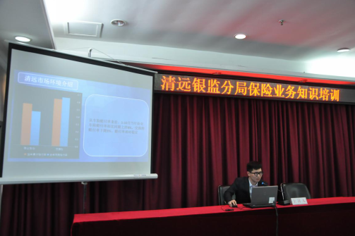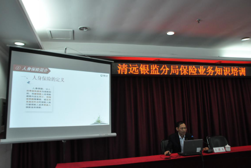 随后,中国人寿清远分公司监察部经理黄晓平、人保财险清远市分公司汽车金融团队负责人李翔宇、责任信用保险部责任保险事业部地市级部门副经理陈景亮和清远市谊安保险代理有限公司总经理余国坚分别就人身保险与寿险风险简介、车险险种及市场情况介绍、非车险业务介绍和专业中介机构的经营与运作等内容向在座人员进行了精彩授课。