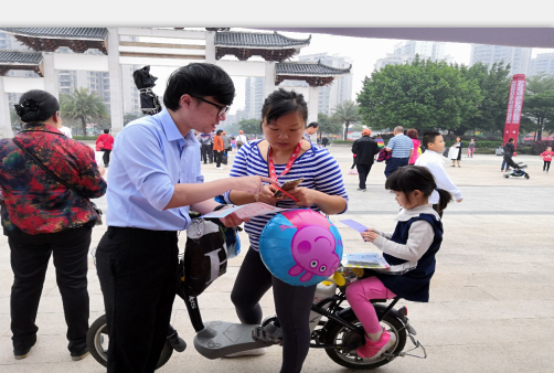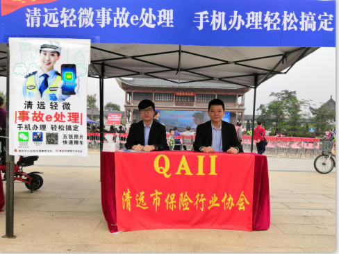 清远市保险行业协会现场设置了摊位,为市民解答如何使用“事故e处理”系统处理轻微事故。