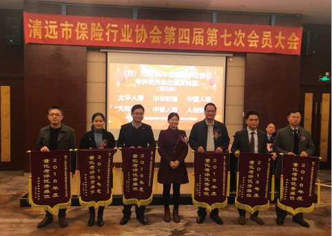 会议还对新入会会员单位、2018秋季继续教育管理工作先进个人以及2018年度量化考评优秀单位分别颁发了证书和锦旗,其中大地保险清远中支荣获2018秋季继续教育管理工作先进个人以及2018年度量化考评优秀单位,由苏海荣总代表清远中支上台领取了相关奖项。