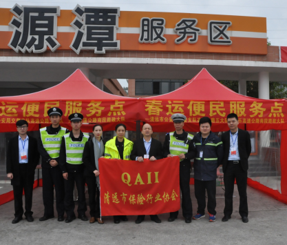 为确保春节期间高速公路交通安全畅通,为人民群众欢度春节创造良好的道路交通安全环境,进一步提高警保联动服务能力,2019年1月25日至2月14日期间,清远市保险行业协会联合清远市公安局交通警察支队组织驻清各经营车险业务保险公司在清远辖区各条高速服务区和出入口设置快处快撤理赔点共20个,为广大市民提供轻微交通事故快处快赔办理、车辆搭电、换胎、指路、饮用水、方便食品、急用药品等暖心服务,为人民送去一次又一次的暖心关爱,护航春节回家路。