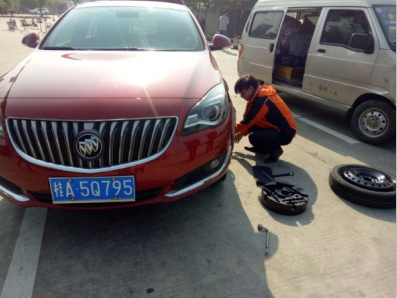 平安产险查勘员帮助车主更换轮胎