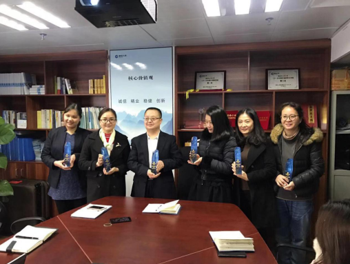 2月25日上午8时30分,清远中支全体员工齐聚中支职场,参加5周年司纪念品颁发仪式。在欢呼声和掌声中,为公司服务5年及以上的同事们从清远中支副总经理郭喜峰手里,接过中支特别制作的5周年纪念奖座。新员工望着精美的奖座和证书,无一不心生羡慕,都憧憬着在下一个五周年时能拿到属于自己的一份荣耀。
