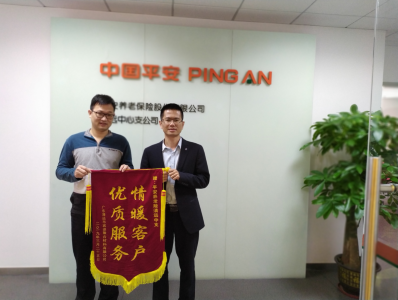 2019年4月2日,清远市某聚合材料有限公司向平安养老清远中支赠送了——“情暖客户,优质服务”锦旗,对平安养老快捷理赔服务表示赞赏。