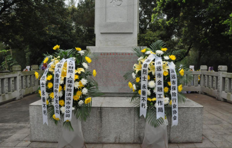 在庄严肃穆的气氛中,党员代表向革命烈士敬献了花篮和鲜花,全体人员整齐排列在烈士纪念碑前,集体默哀三分钟。