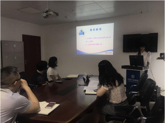 | 大地保险清远中心支公司开展警示教育案例学习 |