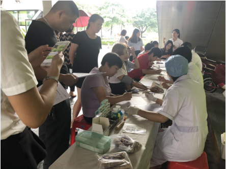 早上十点,清远市中心血站的采血车就开到我中支职场一楼。在采血车旁的填表点已经是座无虚席,志愿者们在工作人员的指引下,按序进行登记、填表、量血压、测血型等,顺利通过之后进行采血。此次活动共有17人参加体检,9人成功献血,血量达到3100毫升。