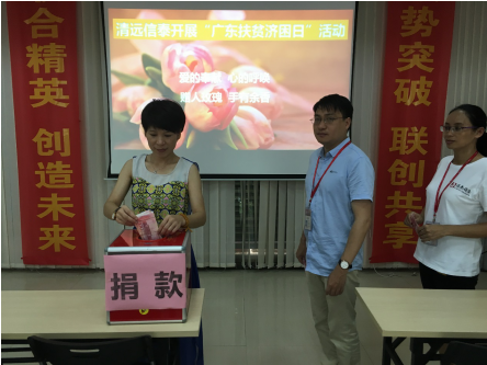 开展扶贫济困活动,是推动科学发展、彰显社会主义制度优越性的具体体现,是缩小贫富差距、实现共同富裕的重要途径,对构建和谐社会、建设幸福美丽祖国具有重要的现实意义。根据《清远市扶贫开发办公室关于开展清远2019年“广东扶贫济困日”活动的通知》精神,我司非常重视,并于2019年6月28日上午,利用早会组织全体内外勤员工开展了以“爱贫困人口,助力攻坚脱贫”为主题的爱心捐赠活动。