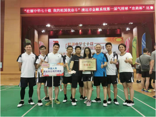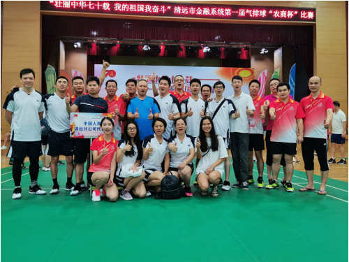 2019年7月20日至21日,清远市金融系统第一届气排球“农商杯”比赛在清远市农商银行运动场馆隆重举行。为庆祝新中国成立70周年,本次活动主题为“壮丽中华七十载,我的祖国我奋斗”。我司精心组织了一批积极向上、年轻活力的员工参加清远市金融系统第一届气排球“农商杯”比赛。