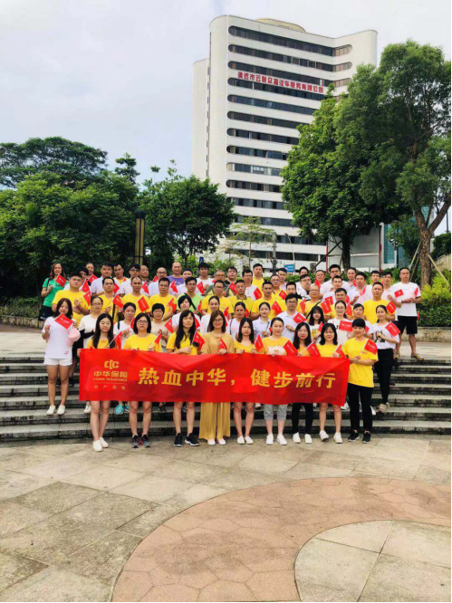 籍清远中支十五周年司庆之际,同时丰富员工文化活动,增强员工体魄和公司凝聚力,深入贯彻“以人为本、健康执业”的活动理念,清远中支8月3日早上举办 “热血中华,健步前行”十五周年庆典系列活动,中支全体72名人员参与本次活动。