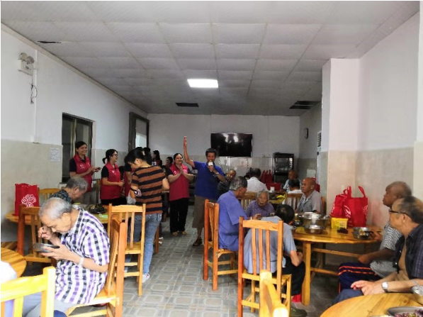 对老人家的情况有了初步了解后,友邦志愿者分成两组,一组负责为老人们烹调健康营养的爱心午餐;另一组去往各老人家的房间,为他们送上爱心福袋,陪伴他们聊天解闷。老人家们都表示非常开心。同时,友邦志愿者还在午餐期间为老人家们准备了精彩的节目,为他们唱歌、表演,给敬老院增添了阳光活力的气息。