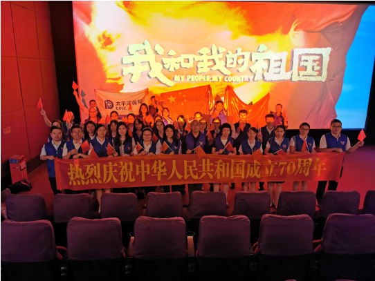 2019年10月14日下午5点,我司组织全体员工观看影片《我和我的祖国》。电影《我和我的祖国》以7个故事讲述了几个的平凡中国人经历的故事,表达普通的个体和祖国大事件相遇在一起,碰撞出来的能量,在这些历史瞬间的每个小人物都熠熠生辉。随着电影情节的高潮迭起,清远中支全体员工心中的爱国之情悠然而生,都为新中国成立的来之不易而感叹,为新中国的成立和发展而自豪。