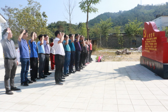 在金造村,党员们怀着崇敬的心情先后参观了村文化室、粤桂湘边司令部旧址、中共小北江特委党员干部培训班旧址,回顾追忆在抗日战争和解放战争时期,金造村军民团结一致、不畏强敌、不怕牺牲的革命斗争历史。在抗日战争和解放战争期间,金造村人民在共产党的领导下,为新中国的建立,做出了重大的牺牲和奉献。活动中,在党委负责人刘大姿同志的带领下,全体党员重温了入党誓词,使党员的心灵得到洗涤,对初心、使命的理解更加深刻。