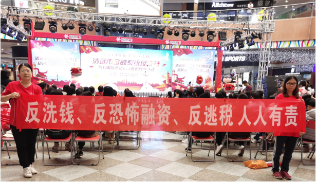 2019年11月17日上午,我公司指派2名工作人员参加了人民银行在清远市顺盈时代广场一期中庭舞台组织的“清远市金融系统反洗钱及扫黑除恶知识宣传进商圈活动”大型户外宣传。我公司工作人员积极参加现场的有奖问答等活动环节,向社会公众普及“三反”及扫黑除恶知识,提升市民群众对反洗钱工作的认知度,营造坚决打击洗钱犯罪和黑恶势力犯罪的浓厚氛围。(友邦保险 曾颖娴)