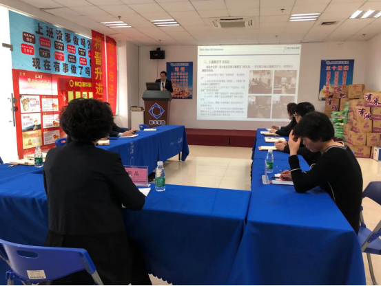 随后,陈晶总一行开展主题教育巡视,并开展业务督导会议,清远中支全体管理干部以及党员代表参会。会议首先由王伟超总对清远党建主题教育工作进行汇报,并对各渠道开局战达成及下阶段目标及达成举措进行了详细阐述。