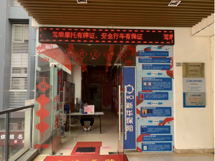 新华保险清远中支在中支职场门口LED显示屏设置了滚动播放“驾乘摩托有牌证,安全行车有保证”“驾乘摩托限两人,全家幸福系一人”“驾乘摩托靠右行,安全驾驶我最行”“驾乘摩托戴头盔,既保安全又最‘威’”的标语。在客户服务中心电视上播放摩托车、电动自行车驾驶安全的宣传折页知识及图片,让客户了解摩托车、电动车交通违法存在的安全隐患、出发前应做哪些准备工作以及正确佩戴头盔等交通安全知识,以此提醒广大摩托车、电动车驾驶人自觉遵守交通法规。