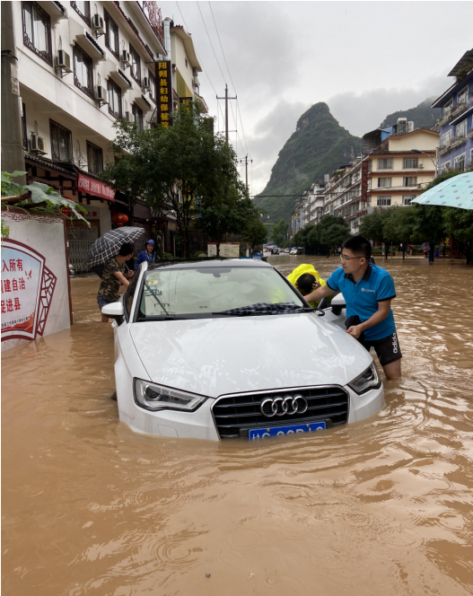 在桂林,车主曾先生看到爱车被洪水全部淹没,心痛不已,车辆施救完成后,中国太保理赔人员迅速拟定赔偿协议并耐心解释说明,曾先生当即签订赔偿协议,轻松完成理赔。