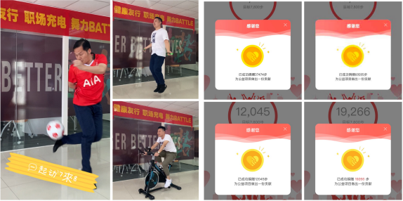 友邦保险清远中支号召全体员工在职场、户外或家里,通过跳绳、羽毛球、跑步、舞蹈等特色形式,开展各项健康活动,带动社会公众积极参与运动,展示保险人健康、活力的形象,将运动步数转化成捐赠步数,传递健康理念的同时助力脱贫攻坚项目的开展,截至7月5日,内外勤员工已捐赠逾150万步。