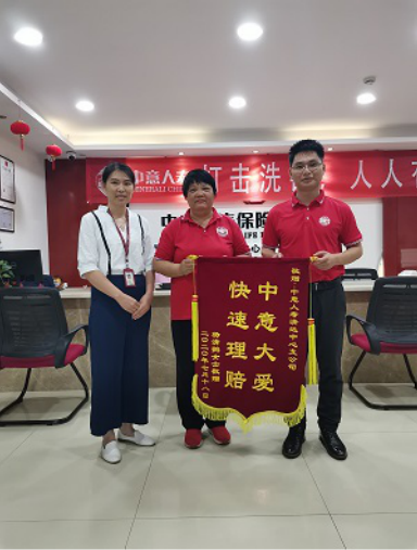 从申请到完成赔案审批只用了4天的时间,杨女士7月7日收到理赔款后对保单服务人员反馈表示十分惊喜:“没想到那么快到账,真的太感谢中意人寿,特别感激那些为她理赔奔波的工作人员……”,由于杨女士身体原因无法上门亲自道谢,特委托保单服务人员代为送上锦旗以示感谢。