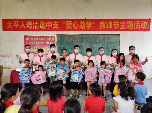 2020年是全面建成小康社会目标实现之年,是脱贫攻坚收官之年,为巩固脱贫成果,关爱留守儿童,关注祖国的未来,构建和谐社会,展现太平人寿大爱,在第36个教师节来临之际,9月9日,清远中支总经理汤思亮带领内外勤讲师共42人,到清远市清新区龙颈镇富勤第一小学进行“爱心助学”教师节主题活动。