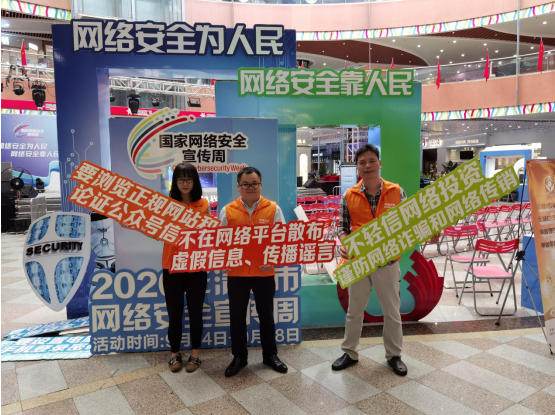 活动从贴近人民群众金融需求的基础知识入手,通过设立宣传展位、派发宣传单张、签署网络安全标语、现场互动答疑等形式,向公众宣传网络安全知识,提高社会公众防范金融网络诈骗意识和技能水平。此次宣传活动覆盖层面广、涉及人群多,宣传活动效果显著有效。