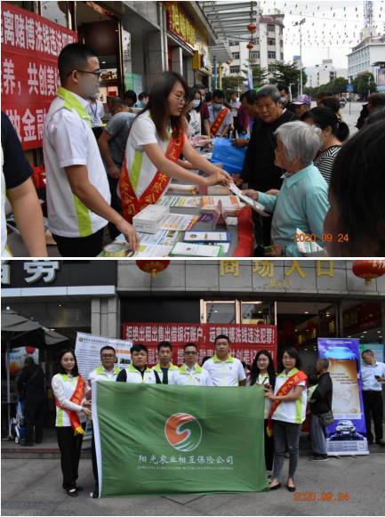 9月24日上午,阳光农业相互保险公司清远中心支公司联合邮储银行清远分行在阳山县商业大道佰盛购物广场开展金融知识宣传活动,清远银保监分局分管领导和相关部门人员到现场对宣传活动进行监督。阳光农险清远中支总经理陈进宏、中支综合部、业务部及阳山支公司成员,邮储银行清远分行分管领导和业务部门人员到现场进行宣传,引导和帮助当地居民了解金融知识,增强风险意识,提高金融素质。
