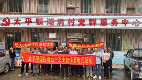 为助力决战决胜脱贫攻坚,金融支持复工复产,塑造我司良好的行业形象,9月27日上午,由太平洋产险清远中支党委书记、总经理何灿荣联合太平洋寿险清远中支副总经理周健顺带队,到阳山县太平镇湖洞村委开展中秋佳节贫困户慰问活动,随同人员有产险阳山营销部负责人叶燕芳、综合管理部经理冯树泉、寿险综合管理部经理张业芳及相关人员。
