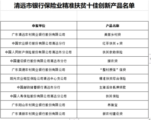 | 阳光农业相互保险公司精准扶贫综合保险项目 入选清远银行保险业精准扶贫十佳创新产品 |