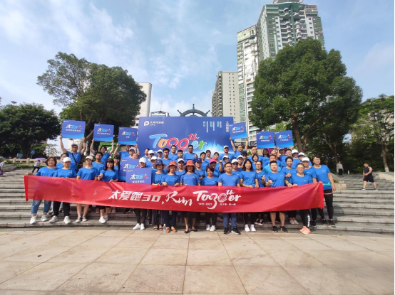2021年5月13日,太保寿险内、外勤员工统一着装,在清远中支总经理带领下,齐集江滨公园曲艺广场,拉开“健步跑”活动序幕。