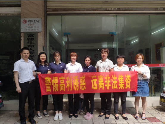 为提高广大群众对非法集资的防范意识和识别能力,2021年5月19日富德生命人寿清远中支阳山支公司在韩愈中学附近开展了防范非法集资等金融知识的宣传活动。