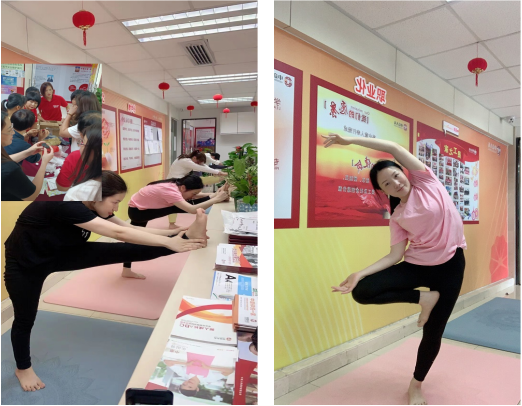 瑜伽兼具强身健体和平衡身心的功效,通过瑜伽调整呼吸、通过瑜伽体位练习,给身体肌肉增加力量,帮助拉伸身体韧带,同时它有种柔和美,练习瑜伽能使自己展现青春的活力。通过肌肉拉伸,康复及美化,静心冥想,全身心美化心灵和身体,达到改善员工工作后的身体疲劳,减缓工作中不良姿势和习惯,造成肩部、颈部等部位的疼痛。每次都能听到同事们说,一堂课下来,大汗淋漓,肌肉拉伸,浑身舒服,痛并快乐着!