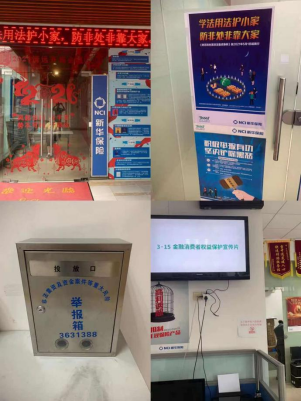 新华保险清远中支利用海报、横幅、电子显示屏滚动播放风险提示、电视播放打非宣传视频素材等方式对职场进行布置,提示客户树立风险意识,远离非法集资。客服大厅摆放宣传折页,供客户可随时取阅。柜员在客户办理业务的时候提示客户购买保险产品、查询保单真伪、获取保单服务的正确途径和方法等,中支职场设置举报箱鼓励社会公众及时举报非法集资线索。