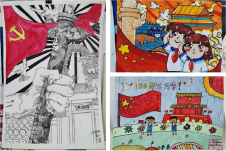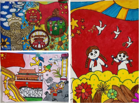 孩子们用一支支五彩斑斓的画笔描绘出对中国共产党的敬仰之情,对祖国繁荣昌盛的自豪之情,表达出对未来祖国建设的憧憬,对强国梦想的向往。