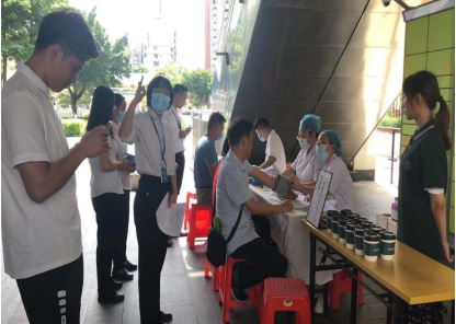 早上十点,清远市中心血站的献血车来到了职场一楼。在献血车旁的填表点已经是座无虚席,志愿者们在工作人员的指引下,按序进行登记、填表、量血压、测血型等,顺利通过之后才可以参与公益献血。不同的是他们当中有的是首次挽臂献血,有的已多次参与无偿献血,但相同的是他们以实际行动支持公益、抗击疫情、奉献社会。我司本次的公益活动还得到爱心企业的支持,他们为献血志愿者们亲手送上一杯温热的鲜奶,以自己的方式感谢志愿者们的付出。在一片爱心笼罩的氛围中,过路群众、周边其他企业的工作人员也纷纷前来参加此次公益活动。据统计,新华保险中心支公司志愿者们此次献血共计3400毫升,助力缓解了清远临床用血紧缺问题,工作人员还现场为志愿者们发放献血证。