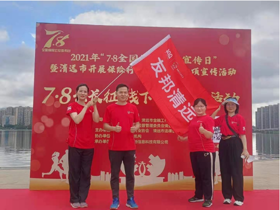 为增强宣传效果,扩大宣传覆盖面,友邦清远总经理带领业务骨干积极参加清远市保险行业协会举办的“7.8全国保险公众宣传日健步走活动”,从清远演艺广场出发,围绕江心岛公园健步走,沿途向市民传递7.8保险宣传日的主题和精神。