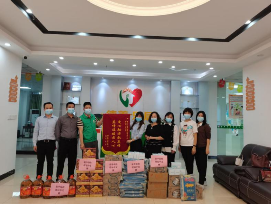 养老中心李总向我们简单介绍了养老中心的情况后,我们向老年人发放牛奶、大米、花生油、面条、口罩等慰问品,并嘱咐公公婆婆注意身体,适时添衣,现场一片欢声笑语。