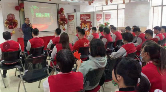 英德创始人曾凡广先生发言,感叹英德经历一年半筹建时间从无到有,总公司审批、银保监通过,经历千辛万苦,得来不易,方才有开门红千万机构。