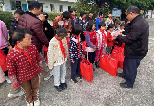 “只要人人都献出一点爱,世界将变成美好的人间…12月22日,伴随着感人的歌声, 中意人寿广东省分公司清远中心支公司举办的“爱心助学放飞梦想”爱心助学活动在清远市清新区浸潭镇大树墩小学拉开了帷幕。活动中,校方领导代表中意人寿为本年度25名贫困学生分别发放了600元助学基金及包装好学习用品的中意福袋,同时转达了我公司对贫困家庭的祝福:“鼓励困难家长们要树立信心,坚强勇敢的面对一切困难,把磨练当成生活和精神的财富,同时祝愿孩子们健康快乐的成长。”家长们对中意人寿的关怀深表感谢。本次爱心助学活动的开展,不仅对困难家庭儿童进行物质上的帮助,更重要的是对孩子们进行心灵上的关怀,让他们感受到社会这个大家庭的关爱与温暖。