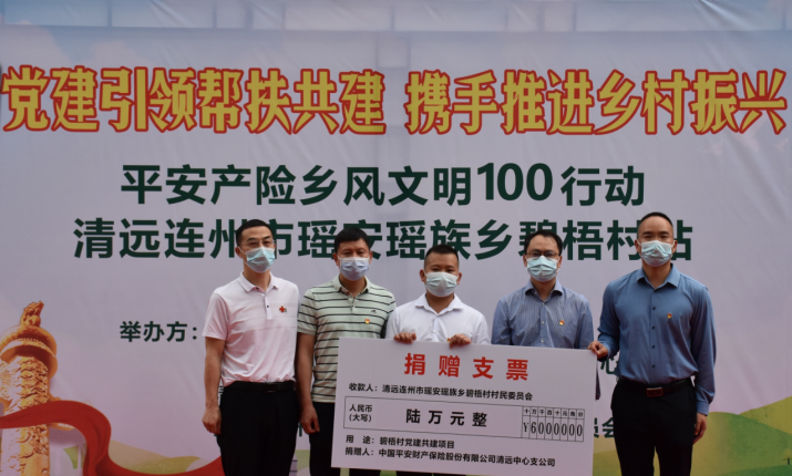4月12日,清远平安产险在清远连州市瑶安瑶族乡碧梧村举行“党建共建”揭牌仪式。清远市金融工作局、清远市红十字会、连州市瑶安瑶族乡人民政府相关领导为此次活动揭牌。