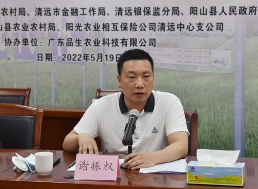 签单仪式上,阳光农险清远中支总经理陈进宏首先感谢各级政府单位对我司的支持和信任,介绍了项目初衷、进行服务表态以及介绍与阳山县的良好合作基础,并表示我司将以签单仪式为契机,为助力乡村振兴付出更大的努力。接下来,广东品生农业科技有限公司总经理赫欢欢介绍阳山县农业生产托管服务情况。