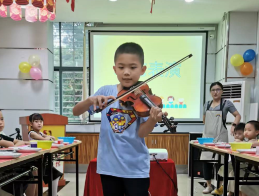 随后,才艺表演环节,首先由9岁的卢业康小朋友进行小提琴演奏——《在草地上跳舞》,悠扬的琴声像一条欢快的小溪,缓缓地流出来,让人仿佛身处大自然的怀抱中,无忧无虑。接着由8岁小朋友叶可晴给大家展示了舞蹈基本功,看得大家连连叫好,掌声不断。
