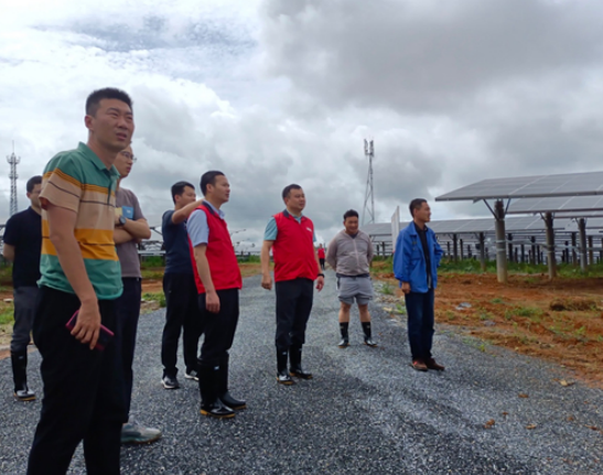 黄文健和林传斌在受灾现场靠前指挥,亲自调度,协调查勘,指导理赔人员运用无人机等设备进行现场查勘固定损失,在保证人员安全情况下开展抢险救灾工作。因工地中间路段被河水倒灌淹没,无法进入现场实地察看,工作组绕路到另一处工地,发现工地现场堆放大量尚未安装光伏板、箱式变压器,立即指导该项目工作人员将光伏板转移到安全地点,光伏区箱变站断电,升压站门口用沙袋堆高,将围墙下排水管及排水系统封堵,防止河水倒灌,并使用吊机将两台尚未安装的箱式变压器吊离原摆放点,最大限度减少财产损失。同时,安排工作人员随时监控水情,轮岗巡查,防止二次受灾。