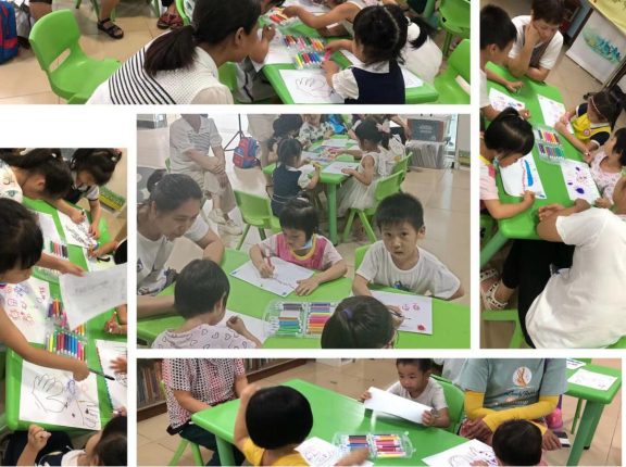 本次活动特邀18个家庭的小朋友参与,活动项目有绘本学习和绘画环节。