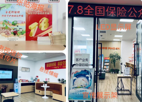 平安财险清远中支通过微信朋友圈推广活动信息、微信客户端向自有客户群发送7·8活动宜传语、平安APP特设弹窗宣传、积极参与“卡点show保险”短视频挑战赛等线上活动;结合在各个门店共享空间悬挂宣传横幅、张贴宣传海报、LED显示屏滚动播放宣传标语、电视播放宣传视频短片等线下活动,突出主题,营造浓厚的活动氛围。