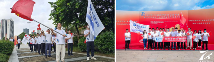 太平洋财产保险不仅按照活动方案布置职场营造浓厚的宣传氛围,同时还开展线上线下的开展“红色领跑迎七一”暨“助推乡村振兴、服务老年群体”保险公益健步走活动,还结合近期的清远水灾拍摄制作了主题为“洪灾无情、太保有爱”的卡点show视频,展示了太保人在灾害面前勇于担当,积极兑现对客户的服务承诺,勇于担当企业社会责任、捐资复产,坚持践行“责任、智慧、温度”的太保服务的积极向上的精神风貌,传递保险人的正能量。