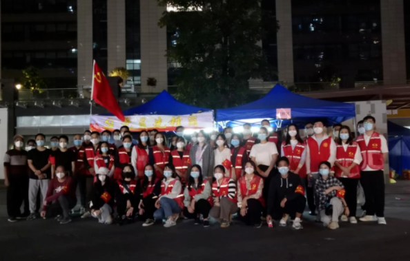 在核酸检测辅助工作过程中,志愿者们坚守一线岗位,服从采样点负责人的安排,维持秩序、疏导群众、帮助登记,热心协助老年人群体完成核酸检测登记工作,一直持续至晚上约22:00。
